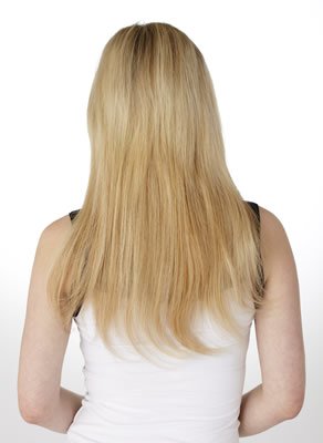 2. Next, don’t judge the colour match on hair extensions at the root of the hair where you clip them in. Most people’s hair is darker at the roots, especially blondes. Remember, nobody sees the top of the hair since you let your natural hair down over top. (See the pics below)