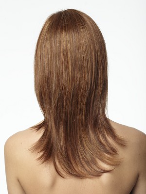 Shine on in this beautifully cut, straight long layered wig that has the option to wear the fringe forward or side swept.