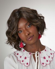 This pretty style has loads of large spiral waves that can be brushed out for a softer effect or scrunched up to be more defined. The soft sweeping fringe emphasises the pretty shape, while the lace front creates a natural looking hair line.