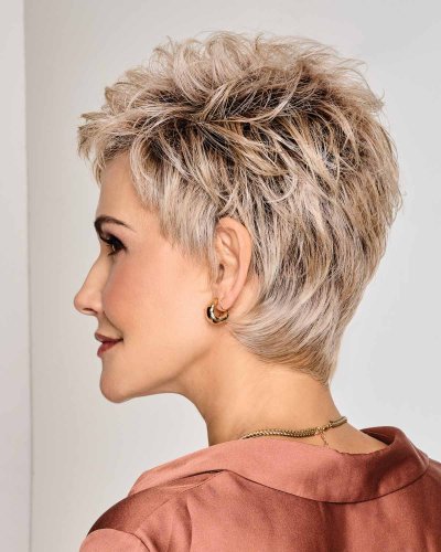 Cropped down has never looked so dressed up. This tightly shorn boy cut is so easy to style with a shattered, piecey texture or as a sleek pixie. Your new favorite, all-season short style. Cool in warm weather, perfect with scarves when the temperature drops.