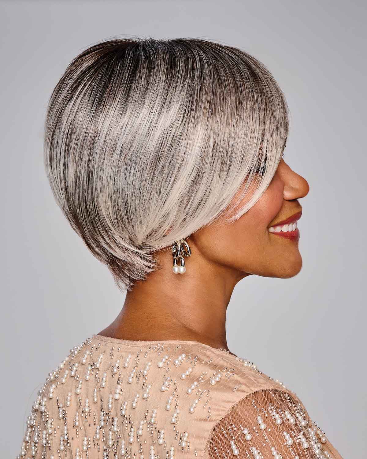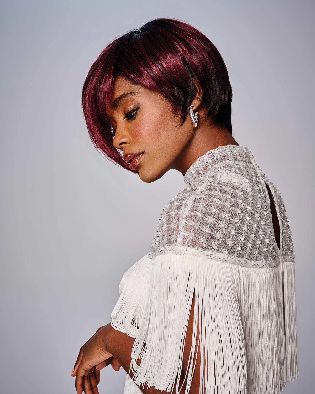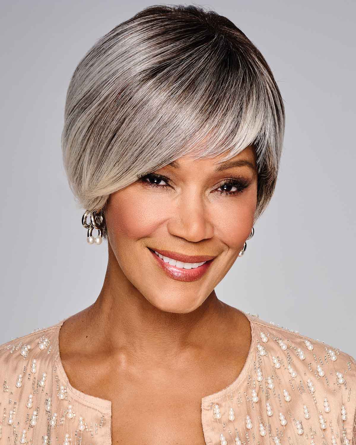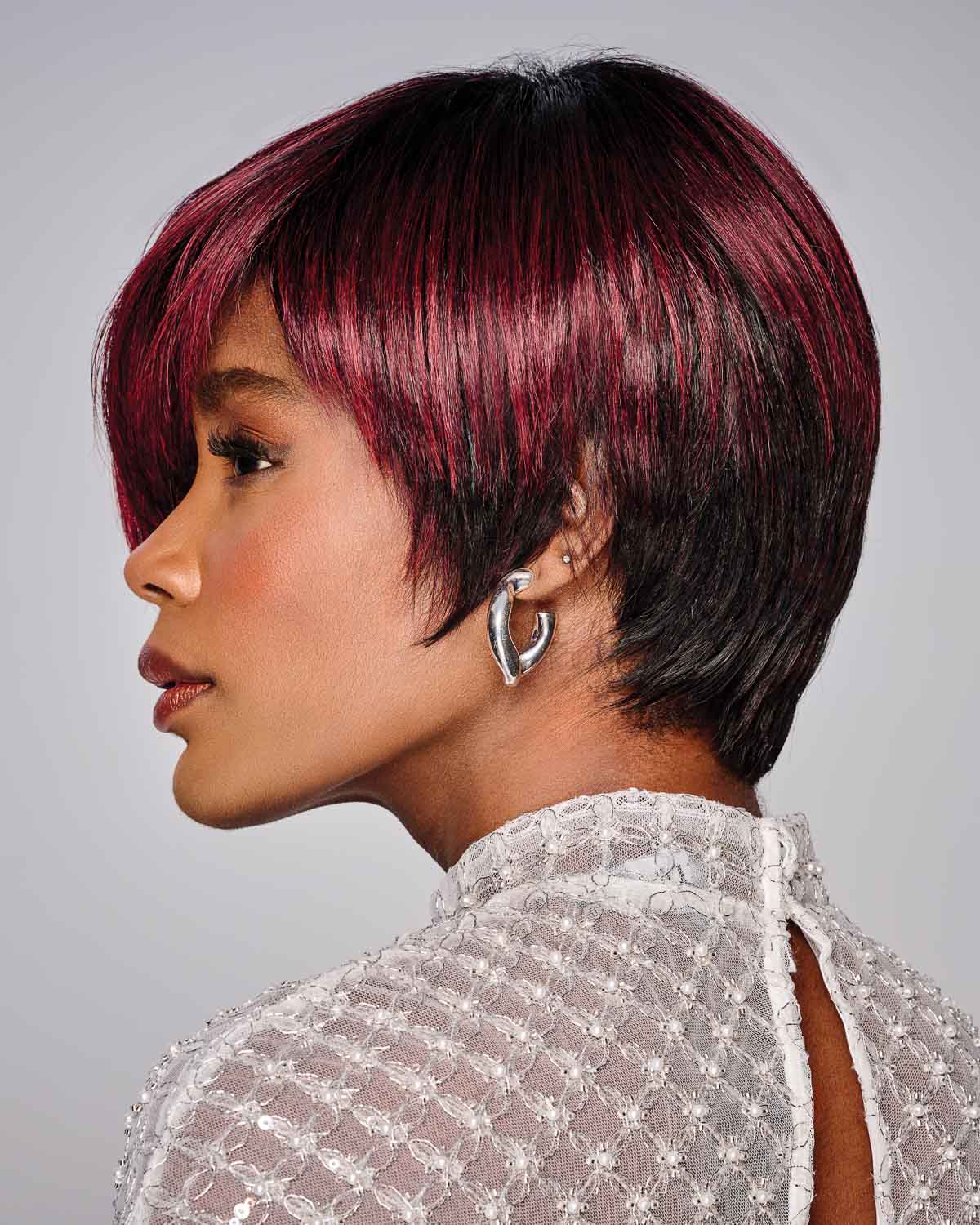 Anastasia is a sleek asymmetrical cut wig that has shattered texture throughout.
